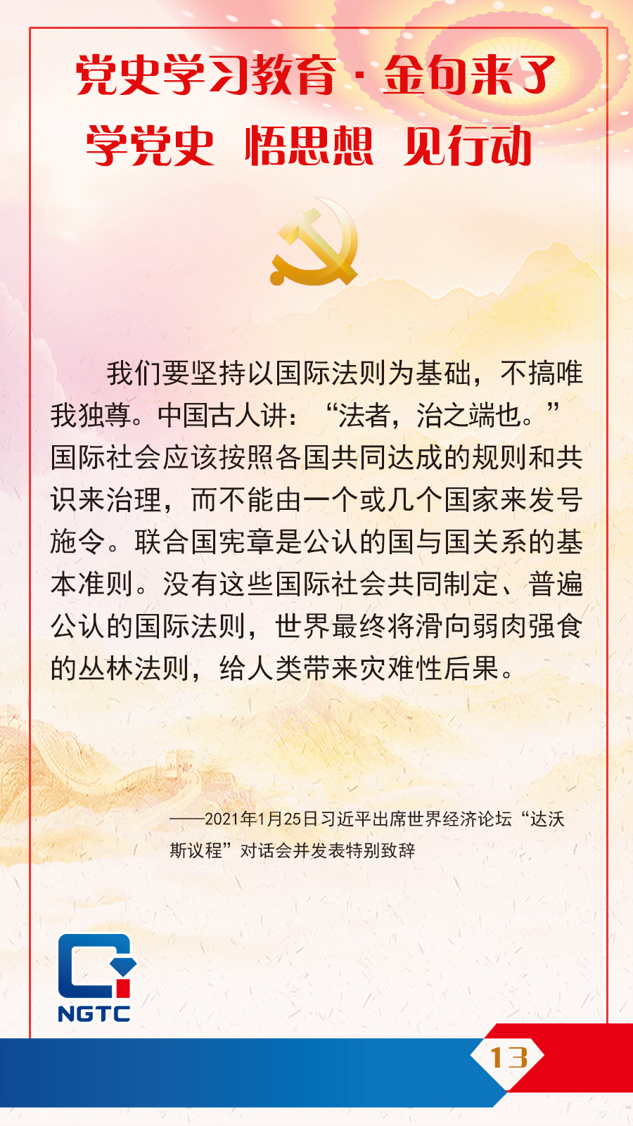 党史学习教育·金句来了丨坚持以国际法则为基础,不搞唯我独尊