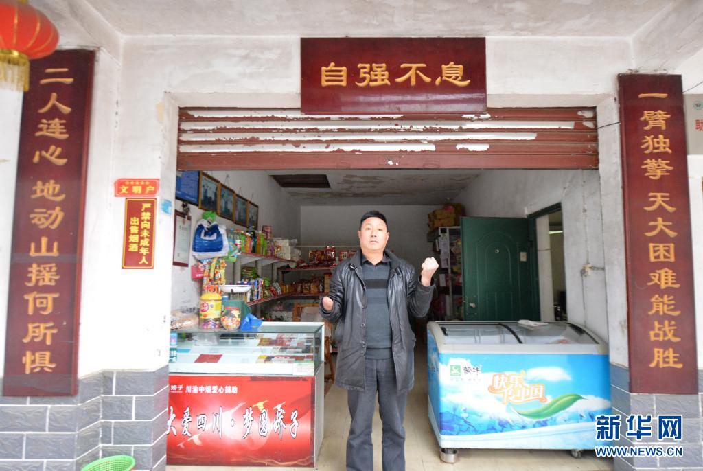 石光武站在他家的小卖部前(资料照片)。新华社发(唐续宗 摄)
