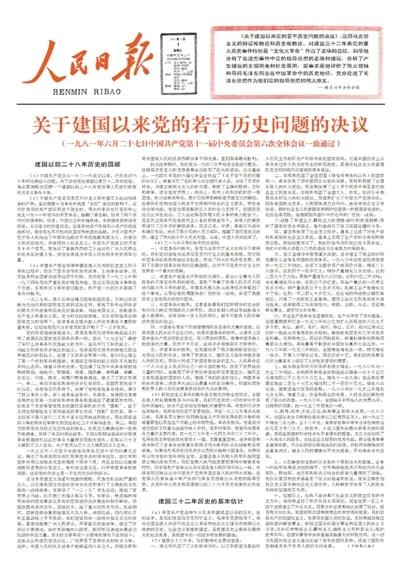 1981年7月1日,《人民日报》刊发《关于建国以来党的若干历史问题的决议》。资料照片
