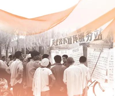 1981年9月,河北临西县实行包产到户后,农技推广站在集上销售种子、农药,许多农民前来咨询农业技术问题。蒋铎 摄(影像中国)历史发展道路蜿蜒向前,决定航向的关键处往往只有几步。