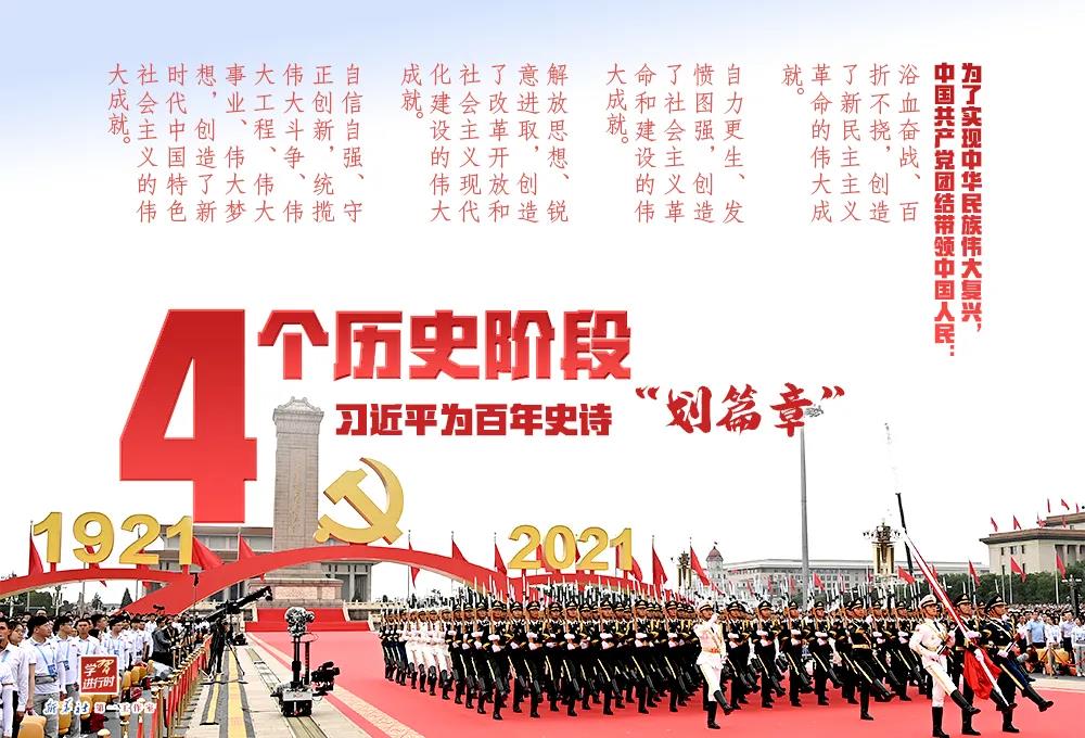 学习宣传贯彻习近平总书记“七一”重要讲话现在已成为全社会的热潮。 讲话中,习近平深刻总结了一百年来,中国共产党团结带领中国人民创造的四个“伟大成就”,十分亮眼: ——创造了改革开放和社会主义现代化建设的伟大成就; 这个总结意味着我们可以将党的一百年划为四个历史阶段来看,也就是新民主主义革命时期、社会主义革命和建设时期、改革开放和社会主义现代化建设时期和中国特色社会主义新时代。四个历史阶段,作出了四个伟大贡献