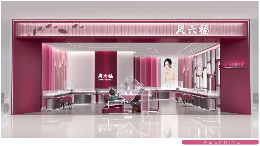 在终端门店形象方面,周六福紧跟时代审美趋势,不断在原有造型元素上进行延展与探索,打造出周六福全新五代形象,以“春夏秋冬”四季作为设计理念,提炼出四种不同的主题色调,通过不同色系、光影、元素的巧妙搭配,力求在色调中为大家构建年轻、时尚的空间感受。四种不同的门店形象如四季一般,个性鲜明却又相互关联。周六福打破传统的单一形象,更好地匹配不同环境,以更和谐、更独特的姿态融入各大商场平台,为消费者带来焕然一新的视觉享受与购物体验。