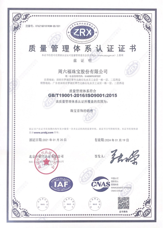 周六福始终视产品质量为企业品牌的生命线,以用户需求为导向,坚持“每一件产品都是精品”的品质理念及工匠精神,设立专业的裸石部门、产品研发部门、编货部门及品质管理部门等,构筑起完善的质量管理体系。从原料采购、设计制造到品牌营销,周六福力求每一件送达消费者手里的产品都是高品质精品。