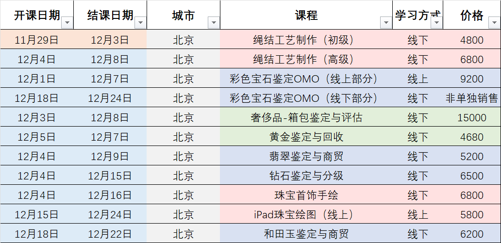 【开课计划】2023年12月全国课程计划