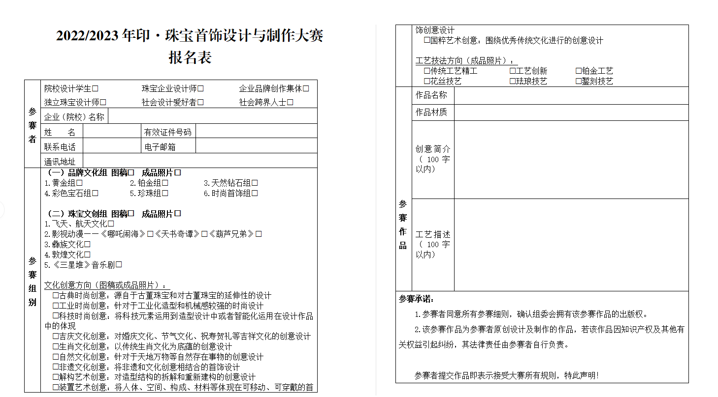 点击下载:2022/2023年印·珠宝首饰设计与制作大赛报名表