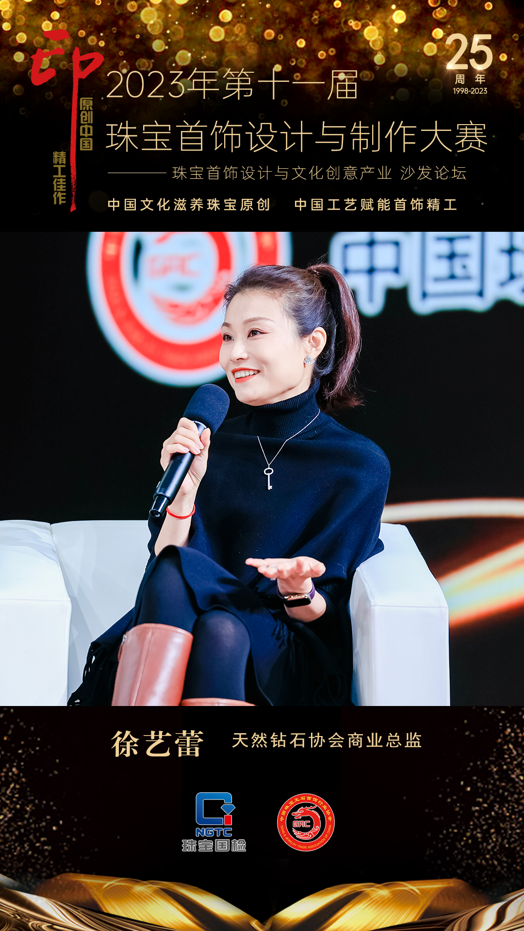 在“珠宝首饰设计与文化创意产业”沙发论坛上,天然钻石协会商业总监徐艺蕾分享了天然钻石品类消费发展趋势的观点。她表示,随着我国消费群体结构的变化,“Z世代”已成为天然钻石消费的主力军,他们更加独立、更加自信,对于天然钻石首饰的选择更加偏重于品质、创意、独立、别致等特性。在全球消费平台上,天然钻石产品创作慢慢向“国风”、IP、文化靠拢,通过文化附加值满足消费者的多样化需求,这是今后天然钻石品类发展的趋势。