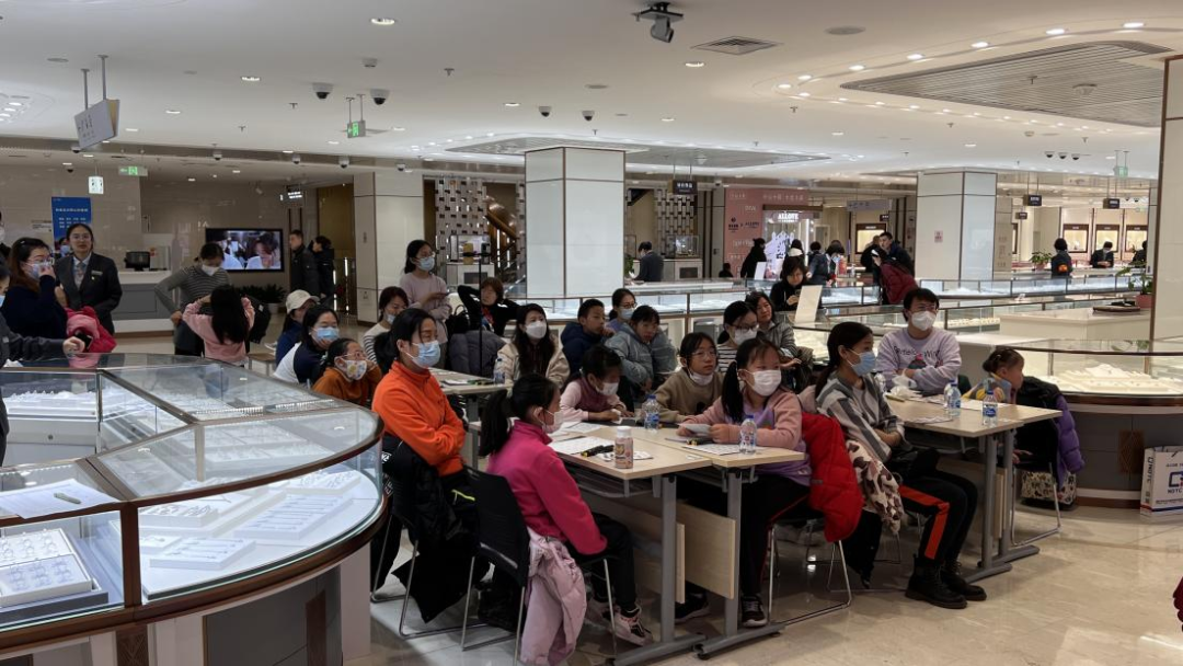 12月10日,珠宝国检集团携手戴比尔斯集团,联合菜百首饰,开启了2023珠宝国检社会公信平台系列科普直播的第28场活动。本场活动采用线上线下相结合的形式,让消费者有机会通过手绘、填色、手工粘贴等方式沉浸式感受天然钻石之美,增强在天然钻石琢形、色彩、切工、设计等方面的认知,提升钻石文化消费信心。