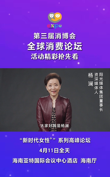 资深媒体人、阳光媒体集团董事长杨澜:“新时代女性+”系列高峰论坛将探讨品牌建设、创新营销、产品创意等女性创业和消费的热点