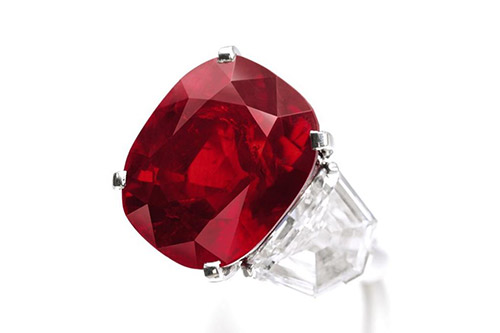 缅甸作为古老的红宝石产地,几个世纪以来陆续发现过许多大颗粒、高品质的红宝石。2015年5月,一颗25.59克拉的缅甸“鸽血红”红宝石在拍卖会上以2,625万瑞士法郎(约合3,033万美元)落槌成交,创下了当时红宝石最高成交价纪录及非钻石类宝石最高成交价纪录。这颗名为“日出红宝石”(The SunriseRuby)的晶体,曾是法国珠宝商卡地亚的收藏品,这颗红宝石的成交价也刷新了当时卡地亚珠宝的拍卖成交价纪录。