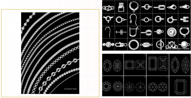 1、通过珠宝成品以及珠宝银版讲解珠宝结构和镶嵌方式,为珠宝设计打下基础。