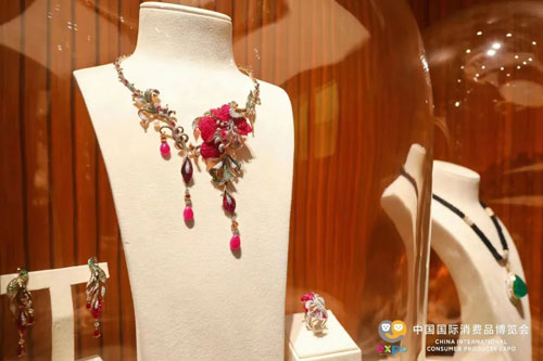 7月25日,第二届中国国际消费品博览会(以下简称:“消博会”)在海南省??谑锌弧1窘煜┗嵊缮涛癫亢秃D鲜∪嗣裾餐侔?,会期从7月25日至7月30日,展览总面积10万平方米,国内外参展品牌2,800余个,来自61个国家和地区。由中国珠宝玉石首饰行业协会(以下简称:“中宝协”)和海南国际经济发展局共同打造的2号馆——“时尚珠宝精品馆”,共有21个珠宝品牌参展商参展,为观众倾情呈现一场珠宝、时尚珍馐大餐。嘉宝阁在本届消博会2号馆中首次亮相,为大家展示精美绝伦的纯手工花丝高级珠宝。