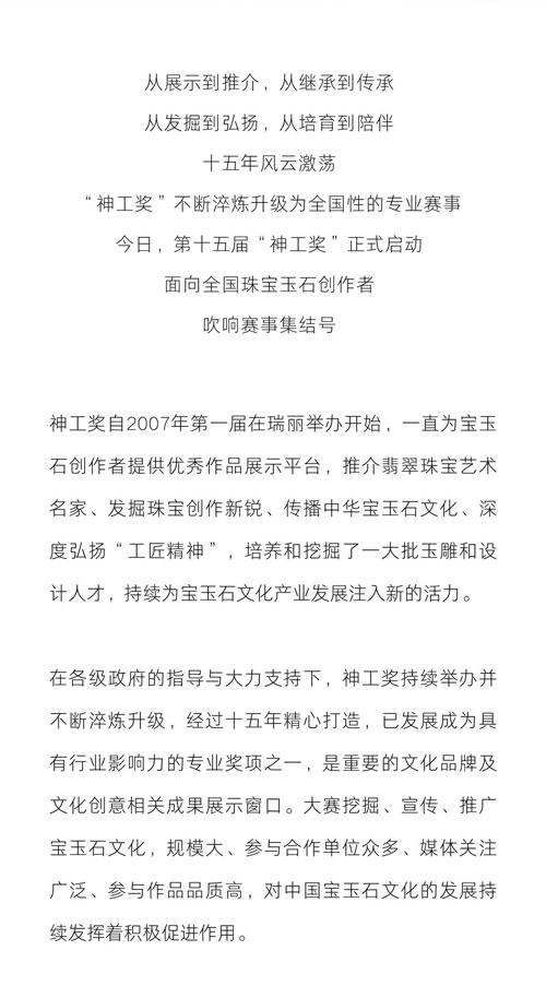 云南瑞丽第十五届神工奖正式启动,创作力量集结号己吹响