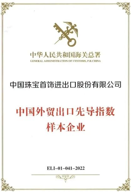 2022年5月,中宝协副会长单位中国珠宝首饰进出口股份有限公司(以下简称:“中国珠宝”)入选“中华人民共和国海关总署中国外贸出口先导指数样本企业”。近年来,在品牌连锁加盟业务快速发展的同时,进出口贸易作为公司的主业之一,也实现了共同成长。