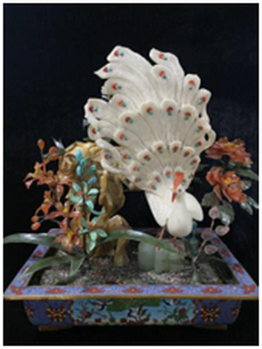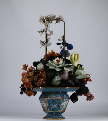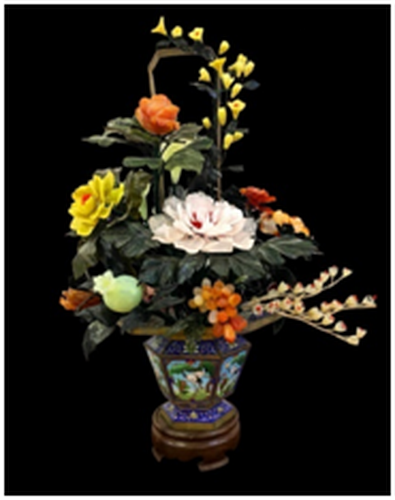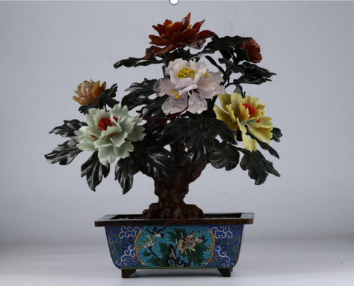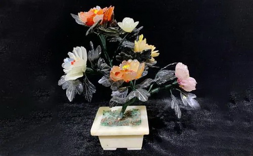 在此次参展的玉雕作品中,具有古代宫廷玉雕风格的“玉石盆景”将精彩亮相。这些“玉石盆景”运用了碧玉、岫玉、玛瑙、松石、芙蓉石、东陵石、水晶、紫水晶等玉料,工艺步骤复杂,玉料颜色丰富多彩,其上花朵与枝叶造型栩栩如生。