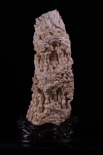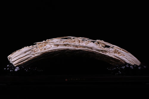 猛犸象牙属于史前遗存化石,已得到了诸多牙雕大师的一致认可,是唯一可以代替现代象牙进行牙雕创作的材料,也是我国牙雕技艺传承和?;さ南MC歪锵笱谰哂泻戏?、稀缺等特性,也承担着传承与?;ぱ赖窦家盏睦分厝?。近年来,宋春国大师也逐渐转型以猛犸象牙为材进行雕刻,形成了自己独有的创作风格,也创作出众多猛犸象牙雕刻艺术精品,在牙雕技艺?;ず痛械牡缆飞显阶咴皆?、越走越宽。