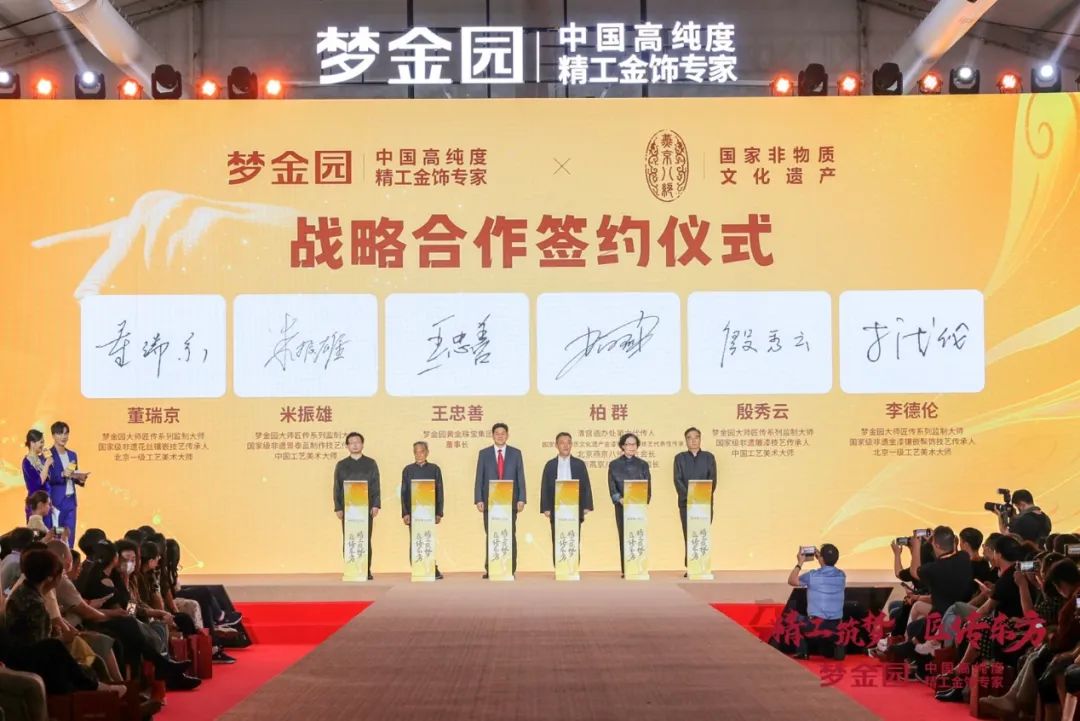 梦金园深谙文化力量对产业发展的推动作用,持续深耕传统文化。本次发布会上,梦金园宣布与国家级非物质文化遗产“燕京八绝”和三孔文化两大知识产权(IP)展开深入合作并推出“大师匠传”系列臻品,推动传统技法和黄金珠宝的双向赋能。梦金园黄金珠宝集团股份有限公司品牌副总经理王国鑫介绍,梦金园“大师匠传”系列邀请“燕京八绝”国家级非遗技艺大师入厂监制,并开展了深度调研和充分论证,致力于满足多样化的现代审美。梦金园与“燕京八绝”知识产权共创,让黄金饰品在保值、时尚、福佑的价值维度之上,增加鉴赏收藏、投资增值、高端礼赠的附加值,让产品既是传家之宝,也是传世之作。通过与孔府、孔庙、孔林及孔子博物馆三孔知识产权(IP)的深度合作,打造工艺、文化双知识产权的创新产品营销。