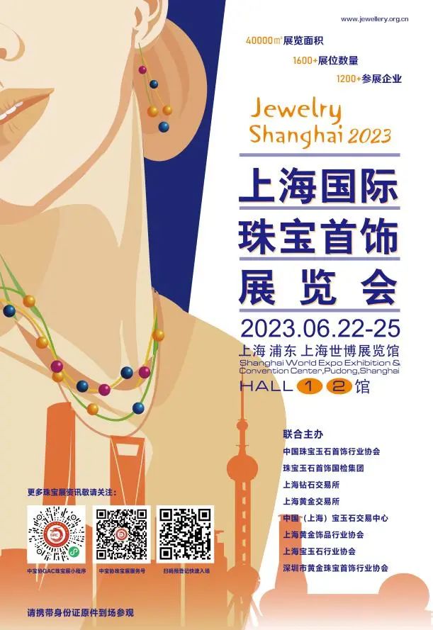 2023年6月22日上午,由中国珠宝玉石首饰行业协会(以下简称:“中宝协”)、珠宝玉石首饰国检集团(以下简称:“珠宝国检”)、上海钻石交易所、上?;平鸾灰姿?、中国(上海)宝玉石交易中心、上海黄金饰品行业协会、上海宝玉石行业协会和深圳市黄金珠宝首饰行业协会多家专业机构联合主办的2023上海国际珠宝首饰展览会在上海世博展览馆正式开幕。